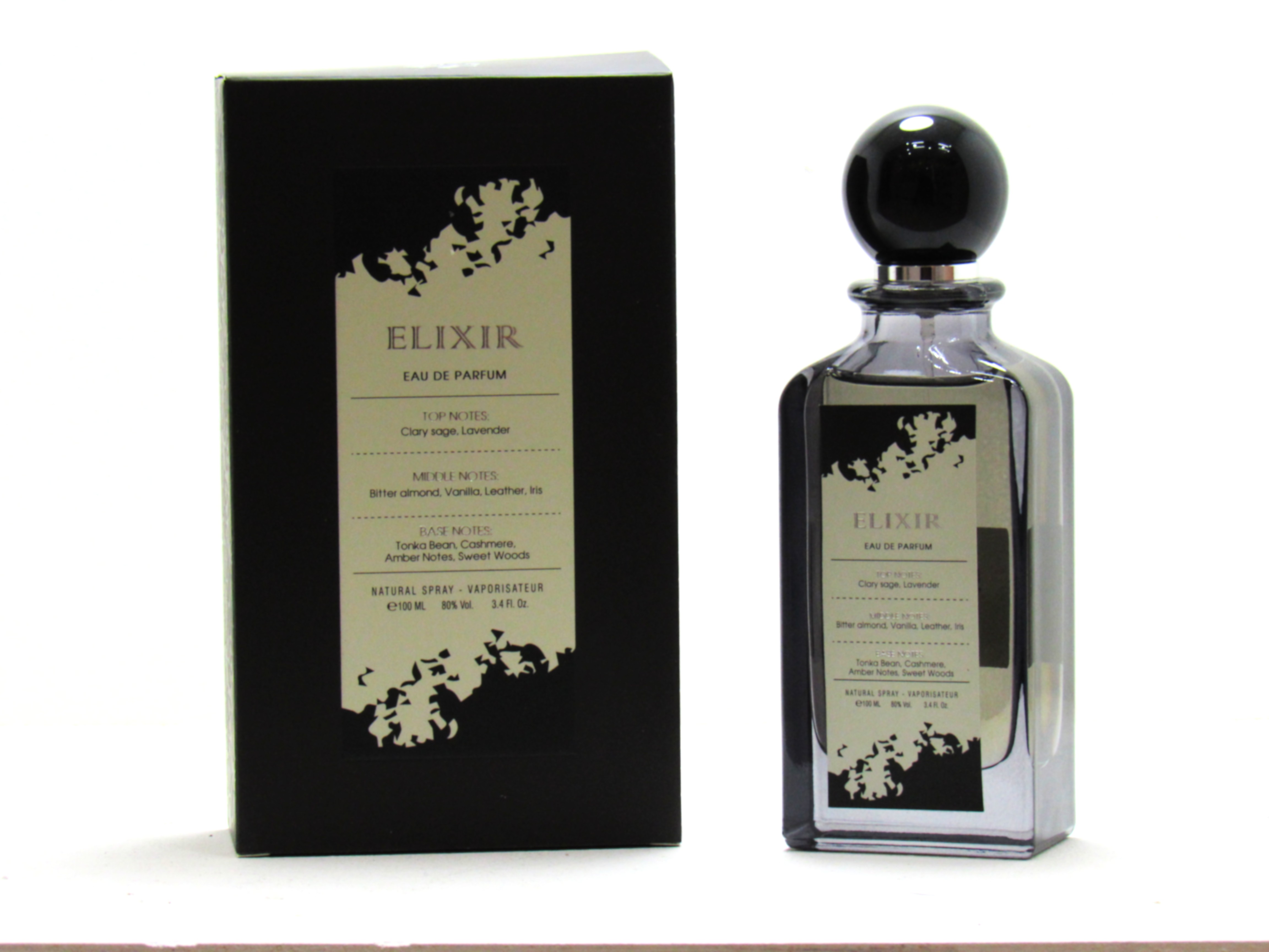 - نت میانی بادام تلخ ، وانیل ، چرم و زنبق