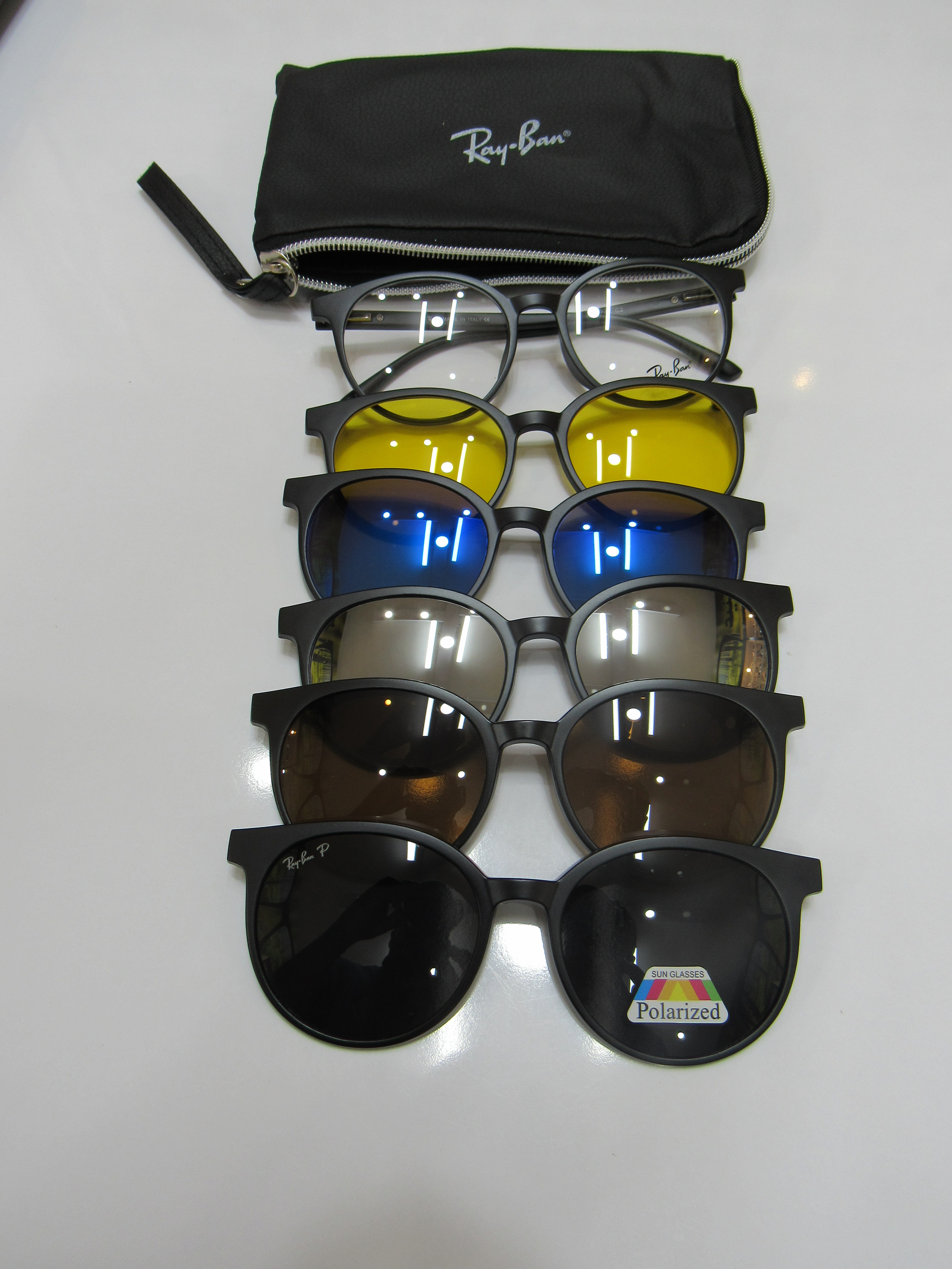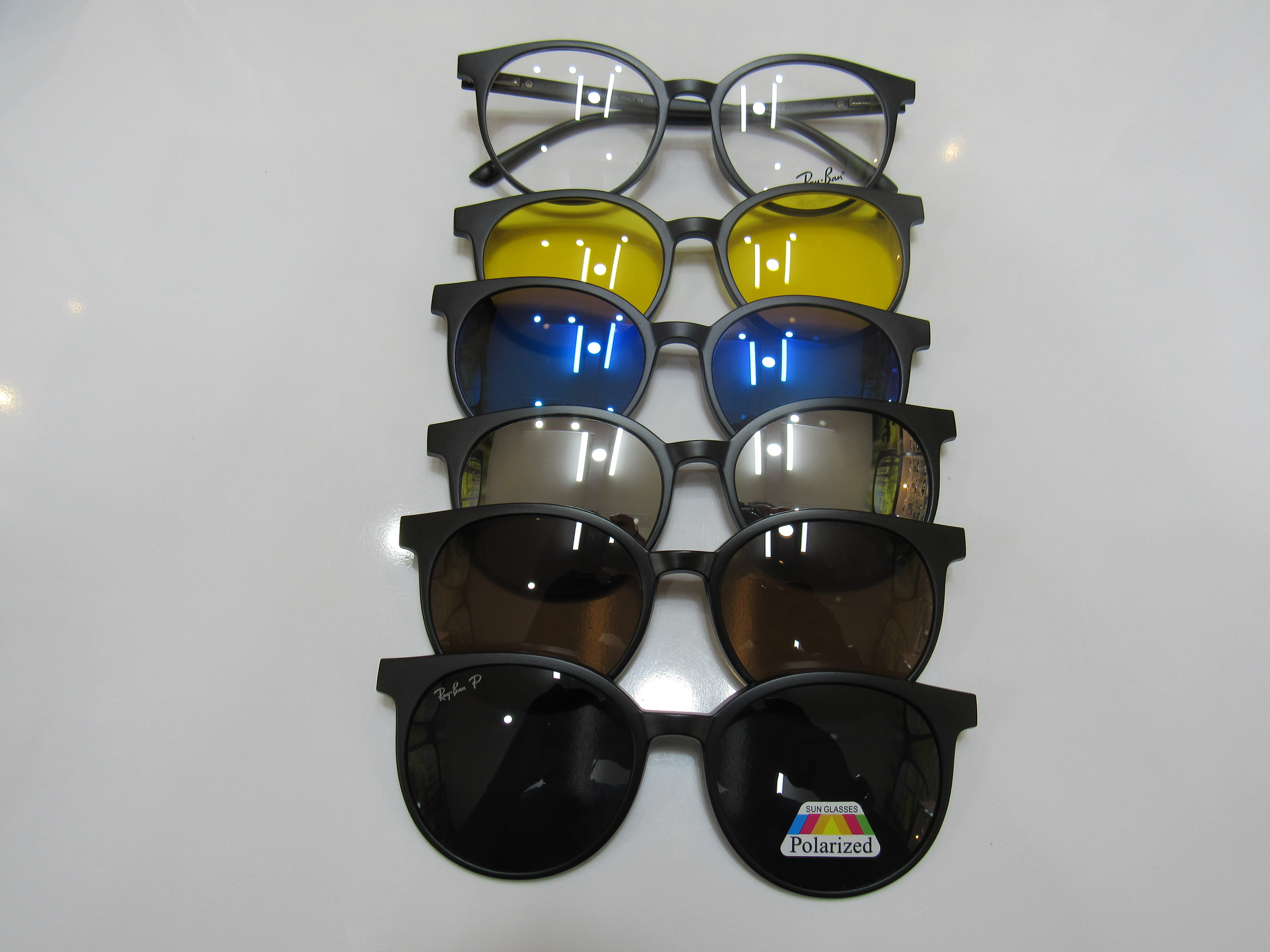 فریم طبی دارای 5 کاور محافظ به رنگ های آبی ، قهوه ای ، مشکی پلاریزه ، زرد و سیلور که مناسب آفتاب ، برف و رانندگی می باشد. جنس این فریم کائوچو و از جنس TR 90 نشکن می باشد سایز این فریم 52-17-140. با دسته لولا فنری